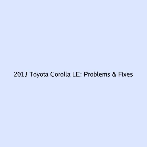 2013 Toyota Corolla LE: A Deep Dive into Common Issues and Solutions