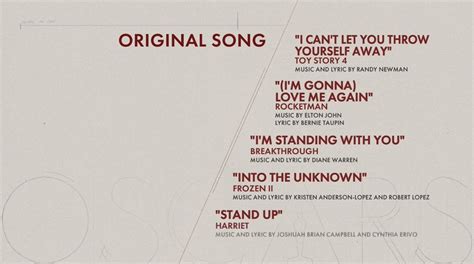Before we get to the big reveal, let’s give a huge round of applause to all the incredible songs nominated for Best Original Song at the 2020 Oscars. Each one was a masterpiece in its own right, contributing significantly to the emotional core and overall impact of its respective film. The Academy truly had a tough decision on their hands this year, showcasing the diverse and exceptional talent in songwriting for film. First up, we had ”(I’m Gonna) Love Me Again” from the biopic Rocketman . This track, performed by the legendary Taron Egerton who portrayed Elton John, was a vibrant and self-affirming anthem that perfectly encapsulated the spirit of the film. It’s a song about self-acceptance and finding love within oneself, a powerful message delivered with Elton John’s signature flair. The music was by Elton John himself, with lyrics by Bernie Taupin, a songwriting duo that has given us countless hits over the decades. Their collaboration on this track proved they still have the magic touch, delivering a song that felt both classic and fresh. Next, we were treated to “I Can’t Let You Throw Yourself Away” from Toy Story 4 . This heartfelt ballad, sung by Randy Newman, was a poignant moment in the beloved animated franchise. Newman, a veteran Oscar nominee and winner, brought his signature blend of tenderness and melancholy to the song, perfectly fitting the themes of loyalty and letting go in the movie. It’s a testament to his enduring talent that he can craft songs that resonate so deeply with both children and adults. Then there was “I’m Standing With You” from Breakthrough . Performed by Chrissy Metz, this inspirational gospel-infused song was a powerful ode to faith, hope, and community support. It served as the emotional anchor for the film, highlighting the incredible true story of a mother’s unwavering belief. The raw emotion in Metz’s performance made this song incredibly moving and a strong contender. And we can’t forget “Stand Up” from the Harriet Tubman biopic Harriet . Co-written and performed by Cynthia Erivo, this powerful and soulful track was a defiant call for freedom and resilience. Erivo, a powerhouse vocalist and actress, poured her heart and soul into this song, making it an anthem for the film’s themes of courage and liberation. It truly captured the spirit of Harriet Tubman herself. These four songs represented a fantastic range of genres and themes, from upbeat pop-infused numbers to deeply emotional ballads and powerful anthems. Each one told a story and added immense value to the film it accompanied, making the Best Original Song category one of the most exciting to watch.