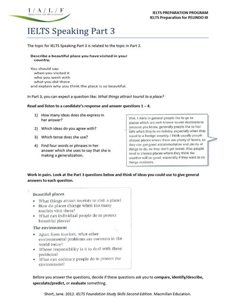 • If your Part 2 topic was ‘education’: Questions might be: What is the importance of lifelong learning? How can education systems be improved? Should education focus more on practical skills than academic knowledge? Approach: Take a stance but acknowledge counterarguments. Use speculative language ( perhaps, it’s possible that ). “I believe lifelong learning is paramount in today’s rapidly evolving world. Personally , I feel that while a strong academic foundation is crucial, education systems should perhaps place a greater emphasis on developing practical, job-ready skills to better equip graduates for the demands of the modern workforce. However, it’s essential to strike a balance to ensure well-rounded individuals.”