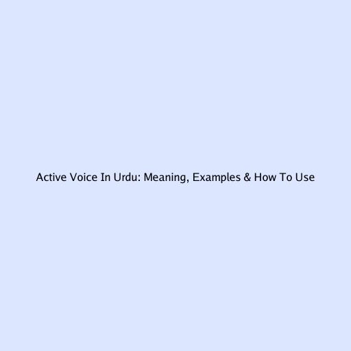 Hey everyone! Today, we’re diving into something super important for anyone learning English or Urdu: active voice meaning in Urdu . We’ll break down what active voice is, why it matters, and how to spot it, with tons of examples in both English and Urdu. Think of it as your friendly guide to understanding how sentences work , and how to make your writing and speaking crystal clear. Let’s get started!