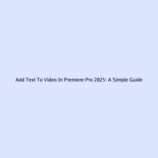 Adding text to video in Premiere Pro 2025 is a straightforward process that can greatly enhance the quality and impact of your video content. By following this guide, you’ll be well-equipped to add and customize text layers, create engaging titles and subtitles, and add visual interest to your video projects. Remember to experiment with different fonts, colors, and animations to find what works best for your style and content. Happy editing, guys!