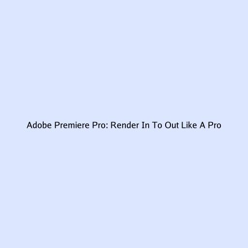 Hey guys! Ever felt like you’re waiting forever for Adobe Premiere Pro to render your entire timeline when you only need a specific section? Well, you’re not alone! One of the most efficient techniques in Premiere Pro is mastering the “Render In to Out” function. This focused rendering approach saves you tons of time and streamlines your editing workflow. Let’s dive deep into understanding and using this powerful feature like seasoned pros.