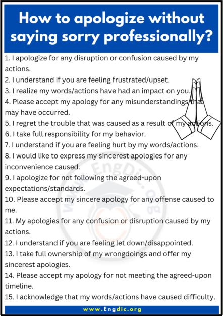 It’s also crucial to avoid certain phrases that can make your apology seem less sincere, like “I’m sorry if you’re upset.” This implies that you’re not taking full responsibility for the situation. Also, phrases like “It wasn’t my fault” or “I was only following orders” deflect blame and can damage your credibility. The key is to be genuine, direct, and show that you understand the other person’s feelings.