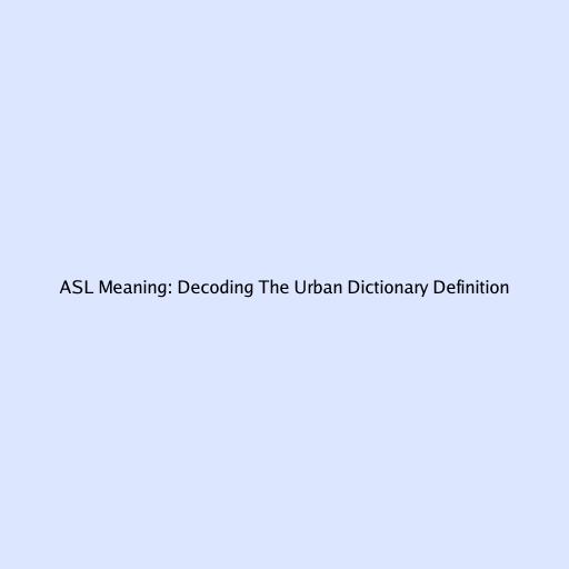 ASL Meaning: Decoding the Urban Dictionary Definition