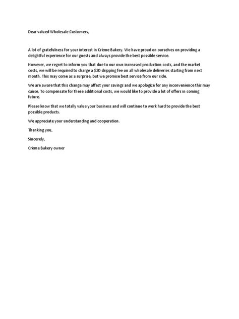 We appreciate your understanding and continued business. We remain committed to providing you with the highest quality products and services at a competitive price. For any questions, please contact us at [Phone Number] or [Email Address].