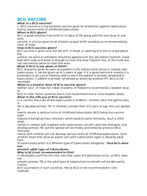 Understanding the BCG Immunization Schedule at Community Health Centers
