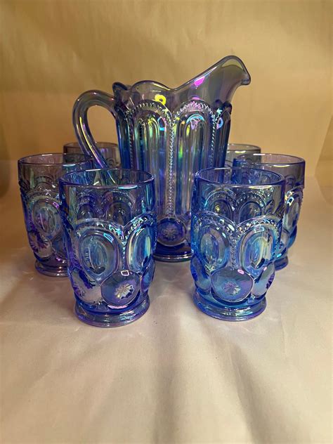 When it comes to blue carnival glass pitcher sets, the patterns are where things get really interesting! Different manufacturers had their own signature designs, and some patterns are more coveted than others. Here are a few popular ones to keep an eye out for: