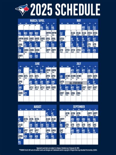 Alright, folks, with your printable Blue Jays 2025 schedule in hand, you’re all set to make the most of the upcoming season! But having the schedule is just the beginning. To truly immerse yourself in the Blue Jays experience, there are a few other things you can do. First off, consider attending some games at the Rogers Centre. There’s nothing quite like being there in person, cheering on the team with thousands of other fans. The atmosphere is electric, and you’ll create memories that will last a lifetime.