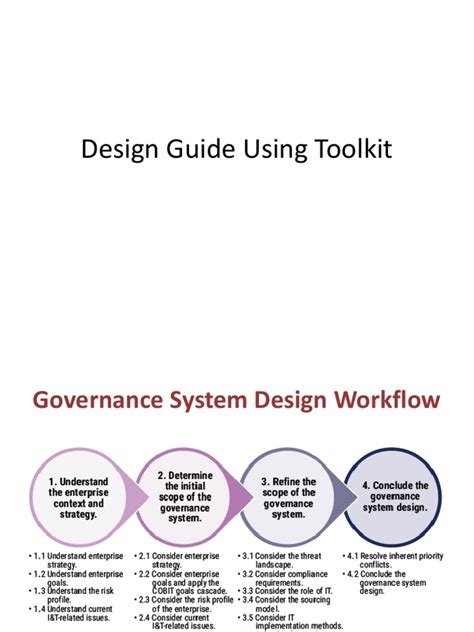 Now, here’s where the magic happens. COBIT 2019, while comprehensive, is designed to be adaptable. It’s not a one-size-fits-all solution. This is where the COBIT 2019 Design Toolkit comes into play. This toolkit is your secret weapon for tailoring the COBIT framework to your specific organizational context. It helps you understand your unique environment, identify your goals and priorities, and then select and customize the COBIT processes that are most relevant to you. Think of it as a set of blueprints and tools that allow you to build a governance system that perfectly fits your business. Without the Design Toolkit, trying to implement COBIT can feel like trying to fit a square peg into a round hole. You might end up with a system that’s either too complex, too simple, or simply not aligned with what your organization actually needs to achieve. The toolkit guides you through a structured process of defining your ‘as-is’ state, your desired ‘to-be’ state, and then bridging the gap. It helps you consider critical factors like the size of your organization, your industry, your risk appetite, regulatory requirements, and your strategic objectives. By systematically analyzing these factors, you can prioritize which COBIT goals and processes are most critical for your success. This targeted approach ensures that you’re focusing your efforts and resources on what truly matters, avoiding unnecessary complexity and maximizing the value derived from your IT governance initiatives. The toolkit also emphasizes the importance of stakeholder needs. It prompts you to identify who your stakeholders are, what their expectations are, and how IT can best support them. This customer-centric approach is vital for ensuring that IT governance is seen as a business enabler rather than a bureaucratic overhead. Furthermore, the Design Toolkit helps you navigate the new features of COBIT 2019, such as the concept of ‘Enabler Goals’ and ‘Process Goals’. It provides practical ways to translate these concepts into actionable items within your organization. It’s not just about theoretical understanding; it’s about practical application. The toolkit provides the structure and guidance needed to make informed decisions about which COBIT components to adopt and how to implement them effectively. It’s an essential resource for anyone serious about establishing robust and relevant IT governance within their enterprise. It empowers you to build a governance framework that is not only compliant but also strategically aligned and operationally efficient, delivering maximum business value.