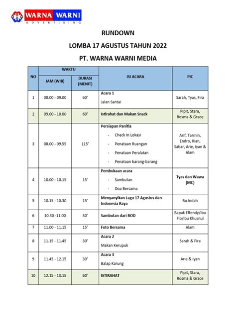 Contoh Rundown Acara 17 Agustus PDF