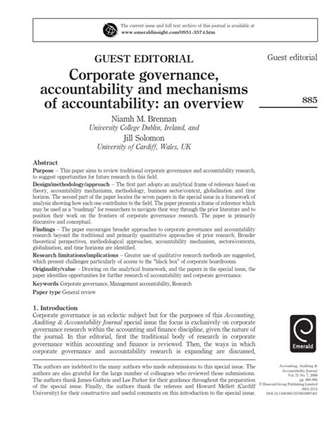 Corporate Governance: Accountability And Mechanisms Overview