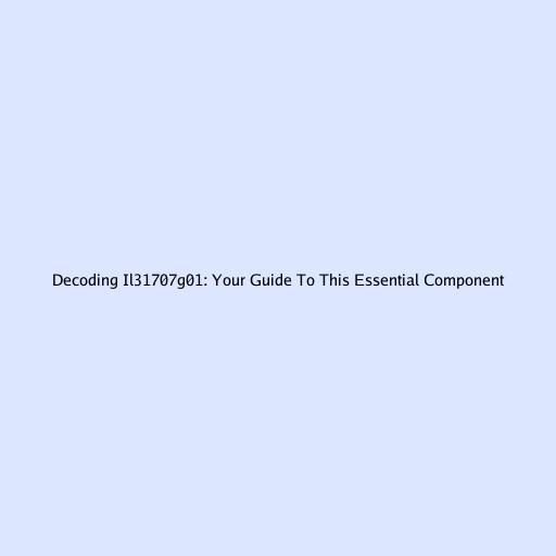 Decoding il31707g01: Your Guide to This Essential Component Looking to