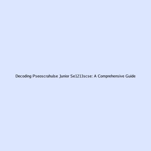 Decoding Pseoscrahulse Junior Se1213scse: A Comprehensive Guide
