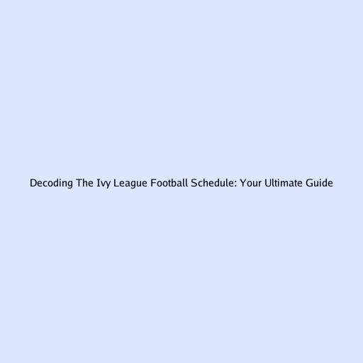 Decoding the Ivy League Football Schedule: Your Ultimate Guide