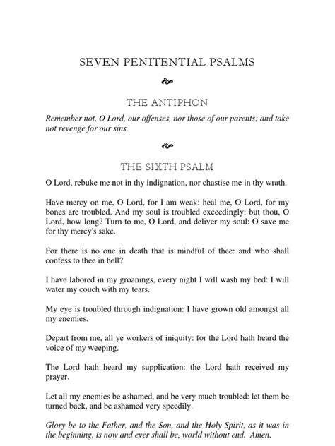 In a world that’s often characterized by cynicism and despair, the Penitential Psalms offer a refreshing dose of spiritual realism . They acknowledge the brokenness of the human condition, but they also affirm the possibility of healing and transformation. They remind us that we are all works in progress, and that God’s grace is always available to help us on our journey. They’re like a roadmap for the soul, guiding us through the difficult terrain of sin and suffering towards the destination of wholeness and peace.