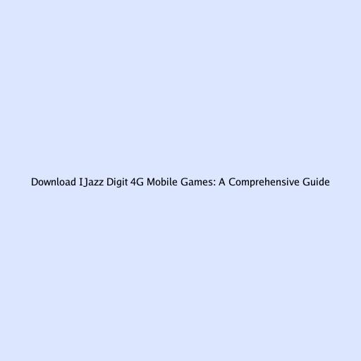 Download iJazz Digit 4G Mobile Games: A Comprehensive Guide