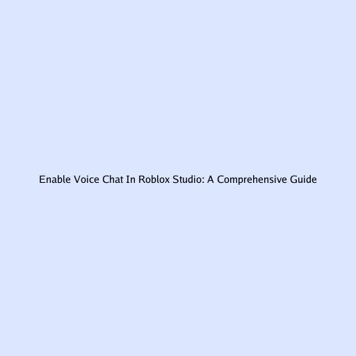 Enable Voice Chat In Roblox Studio: A Comprehensive Guide