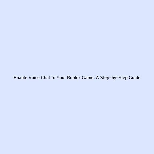 Enable Voice Chat in Your Roblox Game: A Step-by-Step Guide