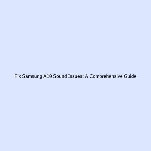 Fix Samsung A10 Sound Issues: A Comprehensive Guide