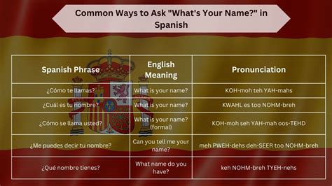 • Mispronouncing the phrases : Spanish pronunciation can be tricky, especially for English speakers. Make sure you practice the pronunciation of \“¿Cómo te llamas?\” and \“¿Cuál es tu nombre?\” until you feel comfortable saying them. Pay attention to the stress and intonation of the words.