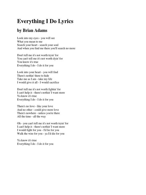 Hey guys, let’s dive deep into the timeless ballad, “(Everything I Do) I Do It For You,” brought to life by the incomparable Bryan Adams. This iconic song, released way back in 1991, isn’t just a catchy tune; it’s a full-on declaration of devotion that has resonated with millions. Whether you’re slow dancing at a wedding or just belting it out in the car, the lyrics paint a vivid picture of love that’s all-consuming. So, grab your headphones, maybe a tissue, and let’s break down what makes this song so incredibly special and enduring. We’re talking about lyrics that hit you right in the feels, a melody that swells with emotion, and a message that’s as relevant today as it was decades ago. Get ready to explore the heart of this power ballad, guys!