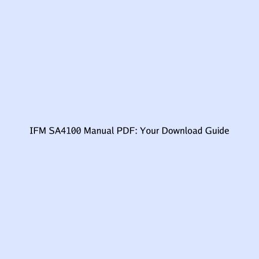 What to Expect in Your IFM SA4100 Manual PDF