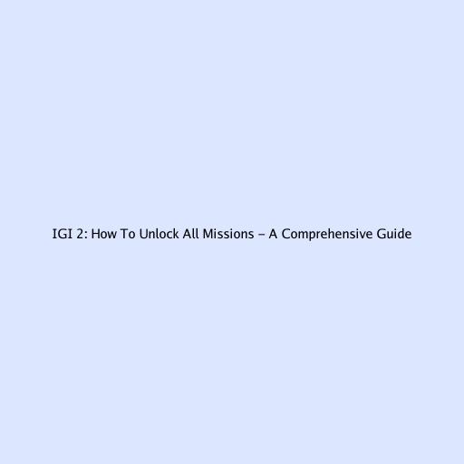 IGI 2: How to Unlock All Missions - A Comprehensive Guide