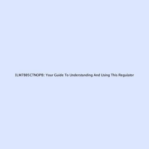 ILM7805CTNOPB: Your Guide To Understanding And Using This Regulator