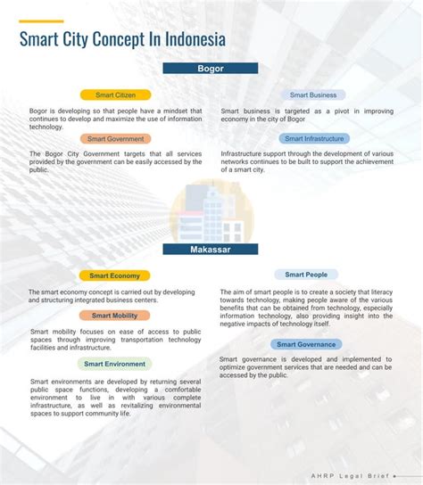 So, what exactly does a “smart city” mean in the Indonesian context? Well, it’s not just about flashy gadgets and futuristic buildings, although those are definitely part of the picture. The core idea is to use technology and data to improve the quality of life for citizens, boost economic growth, and make cities more sustainable. Imagine a city where everything works seamlessly, from public transportation to emergency services. That’s the dream! For Indonesia, this often involves tackling some unique challenges, like managing the huge and ever-growing populations of cities like Jakarta and Surabaya, dealing with traffic congestion, and improving access to essential services for everyone, no matter where they live. Smart city initiatives in Indonesia typically focus on several key areas, including smart governance, smart economy, smart mobility, smart environment, smart living, and smart people. Let’s break those down a bit. Smart governance focuses on using technology to make government more efficient, transparent, and responsive to citizens’ needs. This can include online services, open data initiatives, and platforms for citizen participation. It is basically the digitalization of government bureaucracy, making it easier for people to access services and voice their opinions. Then, there’s the smart economy , which is all about boosting economic growth through innovation and digital technologies. This can involve supporting startups, promoting e-commerce, and creating digital hubs. This is all about making the economy more dynamic and helping it adapt to the digital age. Next up, we have smart mobility , which focuses on improving transportation and reducing traffic congestion. This includes things like smart traffic management systems, public transportation apps, and electric vehicle infrastructure. Think of it as making it easier and faster to get around. We also have smart environment , which aims to improve environmental sustainability. This involves things like waste management systems, air quality monitoring, and renewable energy projects. It is about making cities greener and more sustainable. And, last but not least, there is smart living , which is all about improving the quality of life for citizens. This includes things like smart homes, healthcare services, and digital education platforms. It is about making cities more livable and enjoyable.