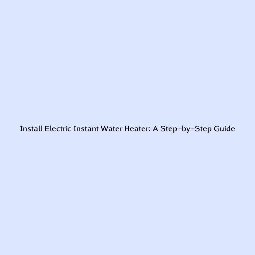 Install Electric Instant Water Heater: A Step-by-Step Guide