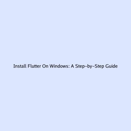Install Flutter On Windows: A Step-by-Step Guide