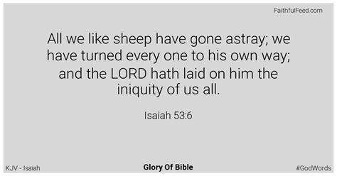 Let’s start with the iconic opening of Isaiah 53:6 KJV : “ All we like sheep have gone astray .” This opening phrase is incredibly powerful, guys, and it sets the stage for the entire verse and the broader context of Isaiah 53. When Isaiah wrote this, he wasn’t just talking about a few individuals making minor mistakes. No, he was speaking about a universal human condition. The imagery of sheep is key here. Sheep are often seen as gentle and innocent, but they are also notoriously prone to wandering off. They lack natural navigation skills and can easily get lost, becoming vulnerable to predators. This perfectly mirrors our human spiritual state. We, like sheep, have a natural inclination to stray from the shepherd’s guidance, from God’s intended path for us. This isn’t a judgment; it’s a profound diagnosis of the human heart. Every single one of us, without exception, has turned away from God’s perfect way. It’s a collective wandering, a universal condition. Think about it: have you ever felt lost, unsure of your direction, or made a decision that led you down the wrong path? That’s the essence of what Isaiah is describing. It’s not about being inherently evil, but about being inherently flawed and prone to deviation from the divine standard. This straying isn’t a one-time event; it’s a continuous tendency. The word “astray” implies a deviation from a correct course, a departure from the truth. And the phrase “ all we ” is emphatic. It leaves no room for exceptions. No one is exempt from this spiritual wandering. This is why the verse is so significant; it paints a stark picture of our need for a savior. It highlights our helplessness in finding our own way back to God. The prophet Isaiah, writing centuries before the coming of Christ, was articulating a truth that would only be fully understood with the revelation of Jesus. This acknowledgment of our straying is the first step towards understanding the immense love and sacrifice described later in the chapter. It’s the recognition that we are lost, and that we cannot find our way back on our own. The imagery is so relatable, so human, and yet so divinely insightful. It captures that feeling of being adrift, of making wrong turns, of not quite living up to the potential God designed for us. This isn’t about condemnation, but about compassion – God’s deep understanding of our fragile, wandering nature. It is the foundation upon which the rest of the verse builds, preparing us for the incredible truth of divine intervention.