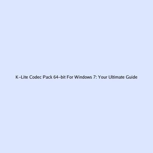 K-Lite Codec Pack 64-bit for Windows 7: Your Ultimate Guide