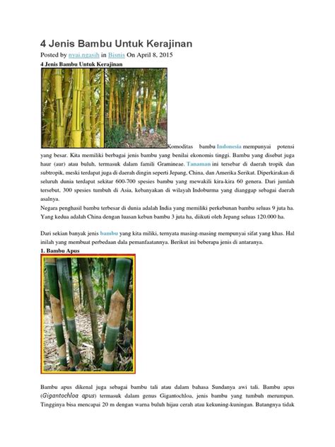 Bambu kecil memang punya daya tarik tersendiri, ya, guys? Ukurannya yang lebih mungil dibandingkan bambu pada umumnya membuat mereka ideal untuk berbagai keperluan, mulai dari dekorasi taman hingga bahan kerajinan tangan. Tapi, pernahkah kamu bertanya-tanya, apa saja sih nama-nama bambu kecil ini? Yuk, kita bedah tuntas berbagai jenis bambu kecil yang unik dan menarik untuk diketahui! Kita akan menjelajahi keindahan dan keberagaman mereka, sekaligus menggali lebih dalam tentang karakteristik serta pemanfaatannya. Siap-siap, ya, karena kita akan menemukan banyak hal menarik tentang dunia bambu kecil !