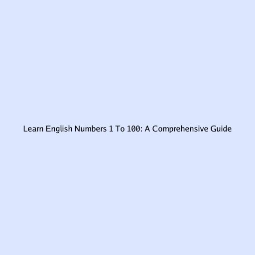 Learn English Numbers 1 to 100: A Comprehensive Guide