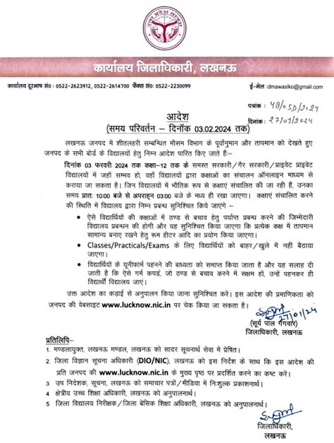 3. Affected Schools: The order should clearly state which schools or areas are affected. It might apply to all schools in Lucknow or only to specific zones or institutions.