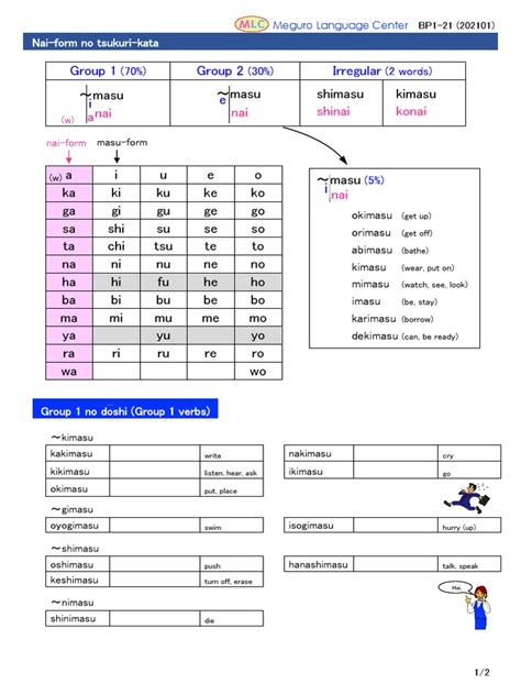 Verb Group Rule Example Nai Form Meaning