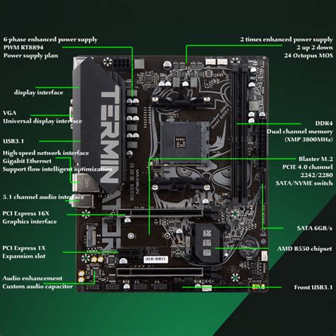Now, let’s get down to the nitty-gritty of the Maxsun B550M Terminator’s features. This board is built around the AMD B550 chipset , meaning it’s designed for AMD Ryzen processors, supporting everything from the older Ryzen 3000 series all the way up to the latest Ryzen 5000 series CPUs. This is a huge plus, as it gives you a lot of flexibility when choosing your processor. For memory, you’re looking at four DDR4 DIMM slots , supporting speeds typically up to 3200MHz and potentially higher with XMP profiles, allowing you to outfit your system with a decent amount of RAM, usually up to 128GB. This is more than enough for most gaming and productivity tasks. When it comes to storage, the B550M Terminator usually packs a punch. You’ll typically find one M.2 slot that supports NVMe SSDs, which is essential for fast boot times and application loading. For traditional storage, there are usually four SATA III 6Gbps ports , giving you plenty of options for hard drives and 2.5-inch SSDs. The PCIe slots are also important. You’ll find a primary PCIe x16 slot, usually supporting PCIe 4.0 when paired with a Ryzen 3000 or 5000 series CPU, which is fantastic for modern GPUs. There are also usually a couple of PCIe x1 slots for other expansion cards. The rear I/O panel typically includes a good mix of ports: USB 3.2 Gen 1 and Gen 2 ports, USB 2.0 ports, an HDMI and DisplayPort for integrated graphics (if your CPU has them), an Ethernet port (usually 1Gbps), and audio jacks. Some models might throw in Wi-Fi headers, but that’s less common on the absolute cheapest variants. The VRM setup is crucial for CPU stability, and on this board, you’re generally looking at a decent power delivery system that can handle mid-range to some higher-end Ryzen CPUs, though extreme overclocking might be pushing it. Overall, for a budget B550 board, the feature set is quite compelling and offers a solid foundation for a wide range of AMD builds.