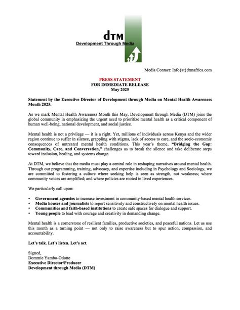 Mental Health Awareness Month Press Release