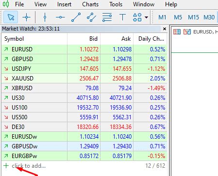 So, why do we even need to add symbols in MT5? Think of symbols as the keys to unlocking different markets. Each symbol represents a specific trading instrument, whether it’s a currency pair like EUR/USD, a stock like Apple (AAPL), a commodity like gold (XAU/USD), or an index like the S&P 500. Without adding these symbols to your MT5 platform, you simply won’t be able to see their price charts, analyze their movements, or place trades on them. Adding symbols is the very first step in customizing your trading environment to focus on the assets you’re interested in. Imagine walking into a supermarket and only seeing empty shelves – that’s what MT5 would be like without the symbols you need! By adding the relevant symbols, you’re populating your trading platform with the data and instruments necessary to make informed decisions. This is crucial for effective trading and analysis. You want to ensure that you’re only viewing the instruments that align with your trading strategy. For example, if you primarily trade forex, you’d want to add all the major, minor, and potentially exotic currency pairs to your watchlist. Similarly, if you’re interested in stocks, you’d add the symbols for the companies you follow. By customizing your symbol list, you streamline your workflow and avoid being overwhelmed by irrelevant information. Moreover, having the correct symbols ensures that you’re receiving accurate price data. Different brokers may offer slightly different symbols or naming conventions, so it’s essential to add the symbols that are specific to your broker’s feed. This will prevent any discrepancies between the prices you see on your chart and the actual prices at which your trades are executed. This foundational step sets the stage for successful trading by ensuring you have the right tools and data at your fingertips. So, let’s get into how you actually do it!