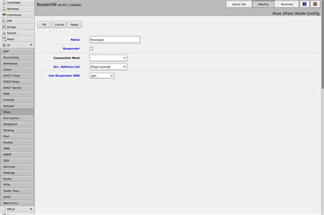 While the L2TP server enables IPsec and uses the secret, you might need to configure specific IPsec proposals and peers, especially if you’re connecting to other Mikrotiks or complex setups. However, for a basic L2TP server setup, Mikrotik often handles the IPsec negotiation implicitly when Use IPsec is enabled on the L2TP server and an IPsec secret is provided. It creates a dynamic peer. For more advanced scenarios or site-to-site VPNs, you would explicitly define: