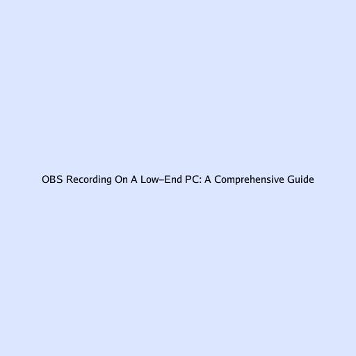 OBS Recording on a Low-End PC: A Comprehensive Guide