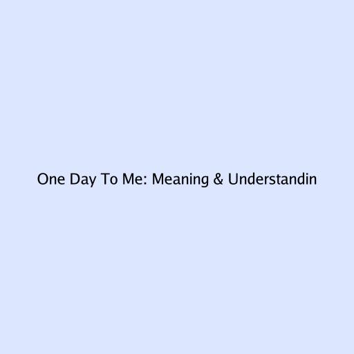 One Day to Me: Unpacking the Meaning and Significance