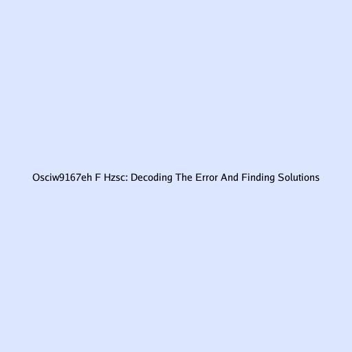 Osciw9167eh F Hzsc: Decoding the Error and Finding Solutions