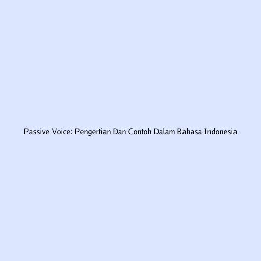 Passive Voice: Pengertian Dan Contoh Dalam Bahasa Indonesia