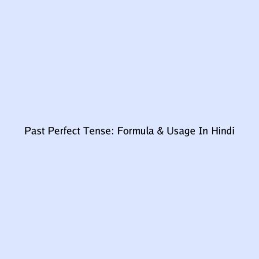Past Perfect Tense: Formula & Usage In Hindi