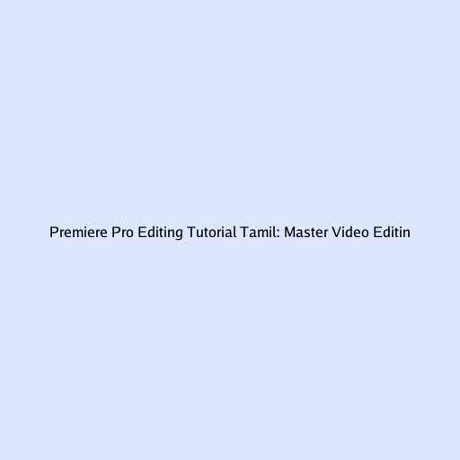 Premiere Pro Editing Tutorial Tamil: Master Video Editing