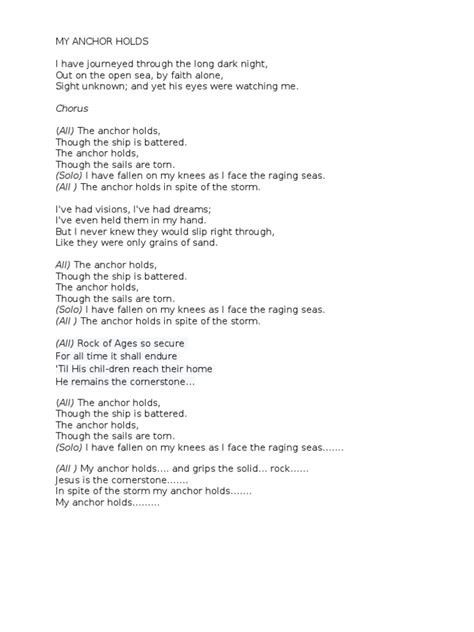 The chorus is often the heart of a song, guys. It’s the part that usually gets stuck in your head, and it typically encapsulates the main theme or emotion. When we examine the Pseoskerse Anchor lyrics , the chorus is where we’re likely to find the most direct statement about the anchor. Is it a plea for an anchor, a declaration of being anchored, or a lament about being anchored? The repetition in the chorus emphasizes its importance. We’ll be looking for keywords and phrases here that resonate most strongly. Sometimes, the chorus provides the answer to questions raised in the verses, or it might pose a new question altogether. The Pseoskerse Anchor lyrics in the chorus might be simple yet profound, or complex and layered. We need to consider the emotional weight of the chorus. Is it triumphant? Melancholy? Defiant? The melodic delivery also plays a huge role here, so even if you’re just reading the lyrics, try to imagine how they might sound. The chorus is the anchor of the song itself, holding all the lyrical elements together.