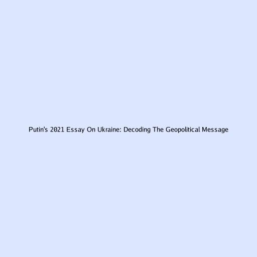 Putin's 2021 Essay On Ukraine: Decoding The Geopolitical Message