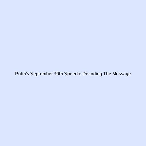 Putin's September 30th Speech: Decoding The Message